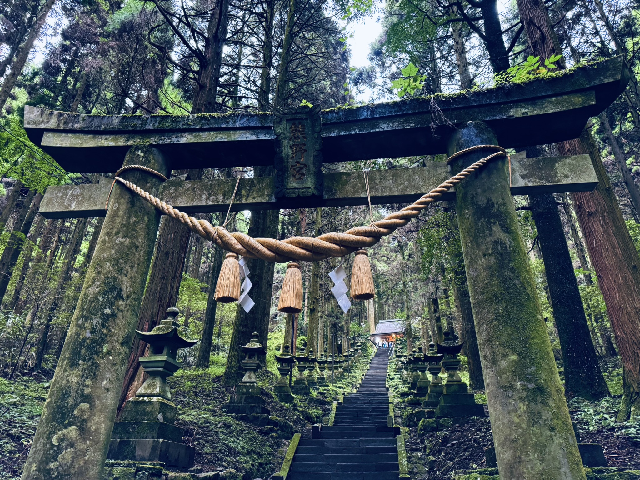 这个神社的人工痕迹确实不多,翻新的痕迹也不多,就是普通大山马路旁的一个神庙,直接从路边进入,神道两边是参天大树,当然石灯里也是有点可乐瓶的。