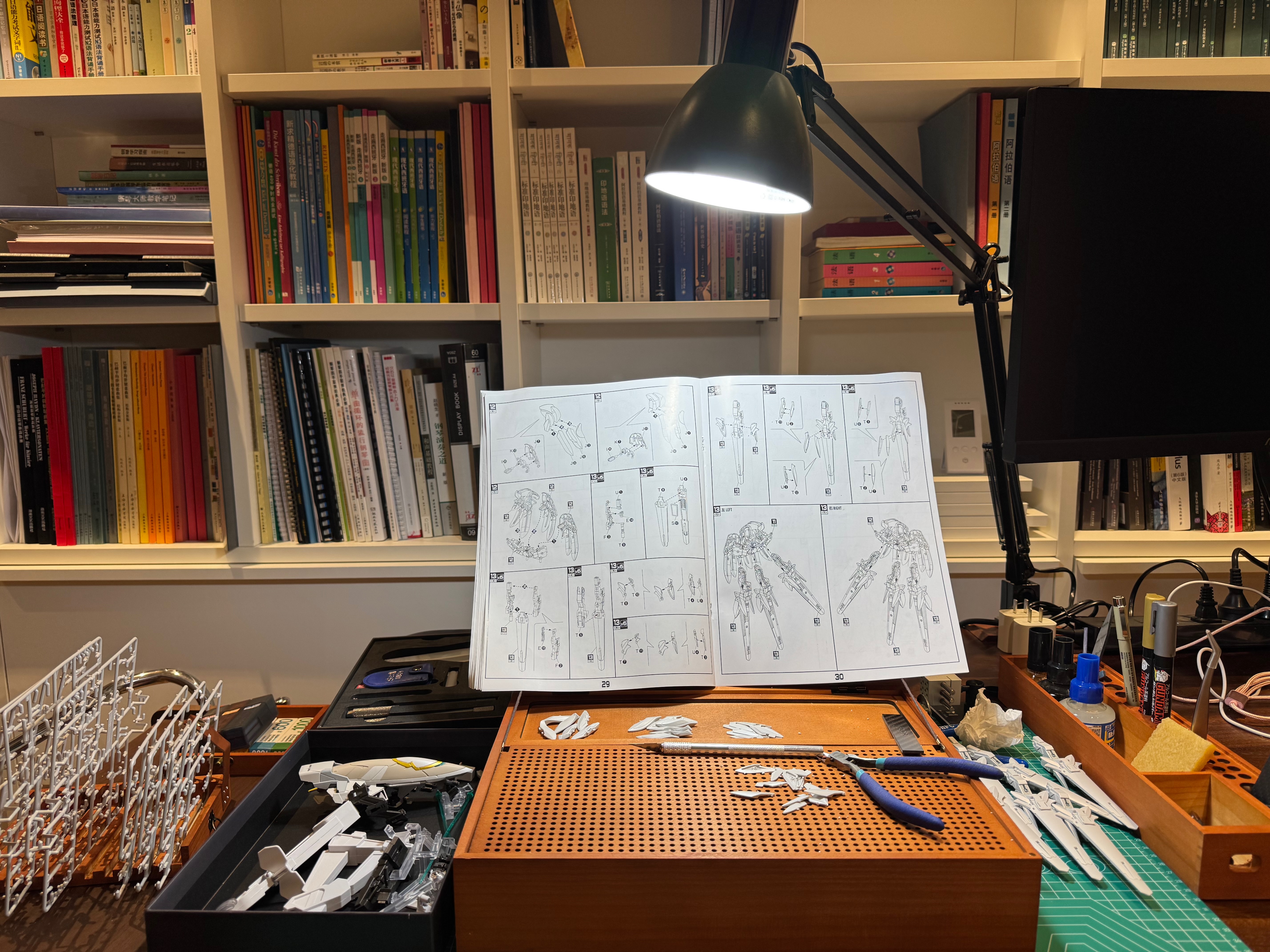 在模型拼装的时候不自觉地学习了一下相关知识,发现这也是一个巨大的领域,需要时间和拼量来磨炼技巧。小时候其实并没有拼过模型,只拼过一只万代的自由,当时还是高考完之后,买来试试而已,拼装过程也完全忘记。中途这十几年的时间,完全没有想过要拼模型。前几周一个非常“偶然”的机会刷到了高达视频(我相信这是精准的大数据推送),想着买个来试试,于是便选了比较酷炫又比较复杂的白雪姬,从这个模型开始,便一发不可收拾了。