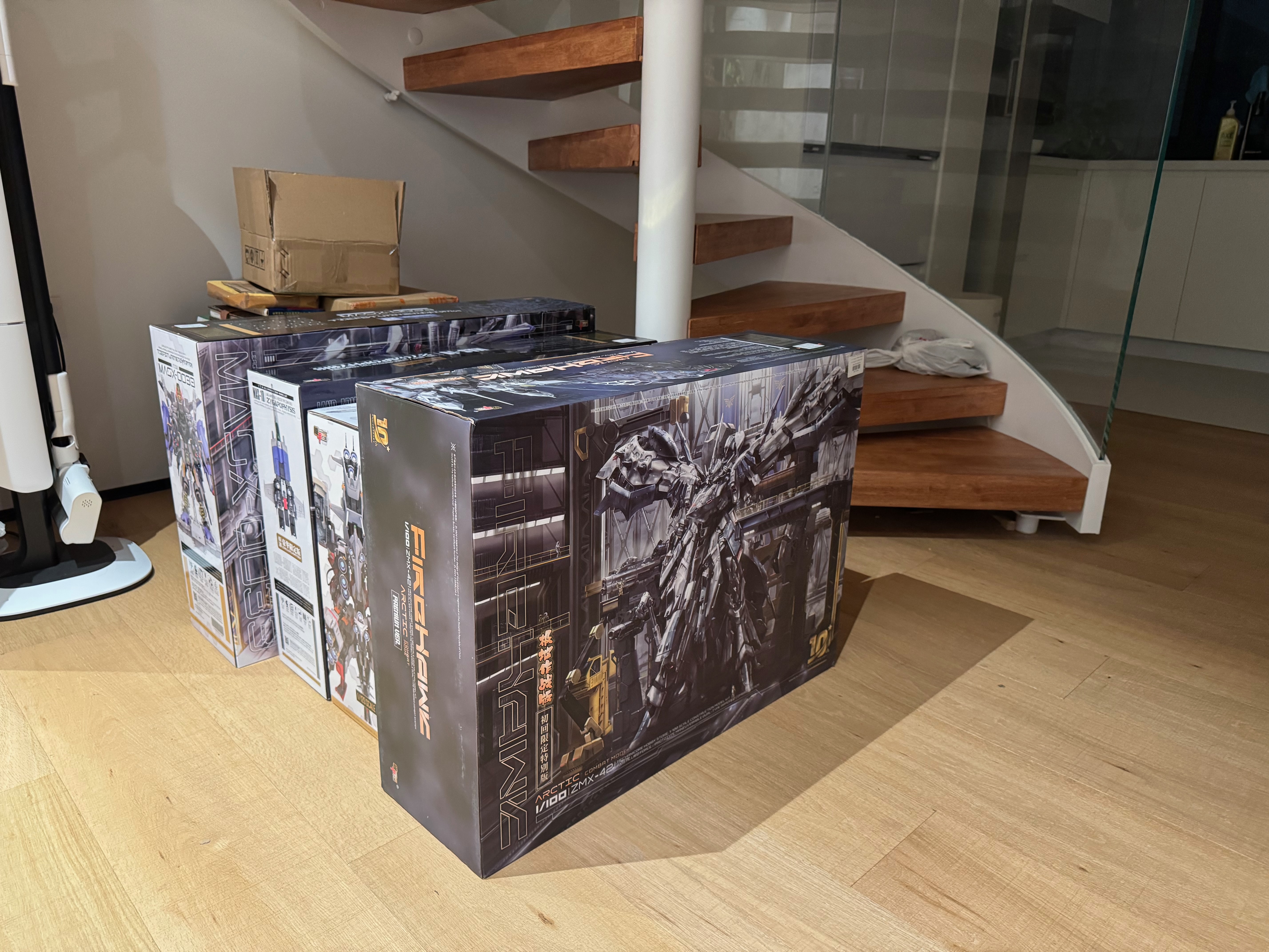 最终目标的机甲之城盒子巨大,甚至没有柜子能放得下,不知道何年何月才敢拆开这几个盒子。